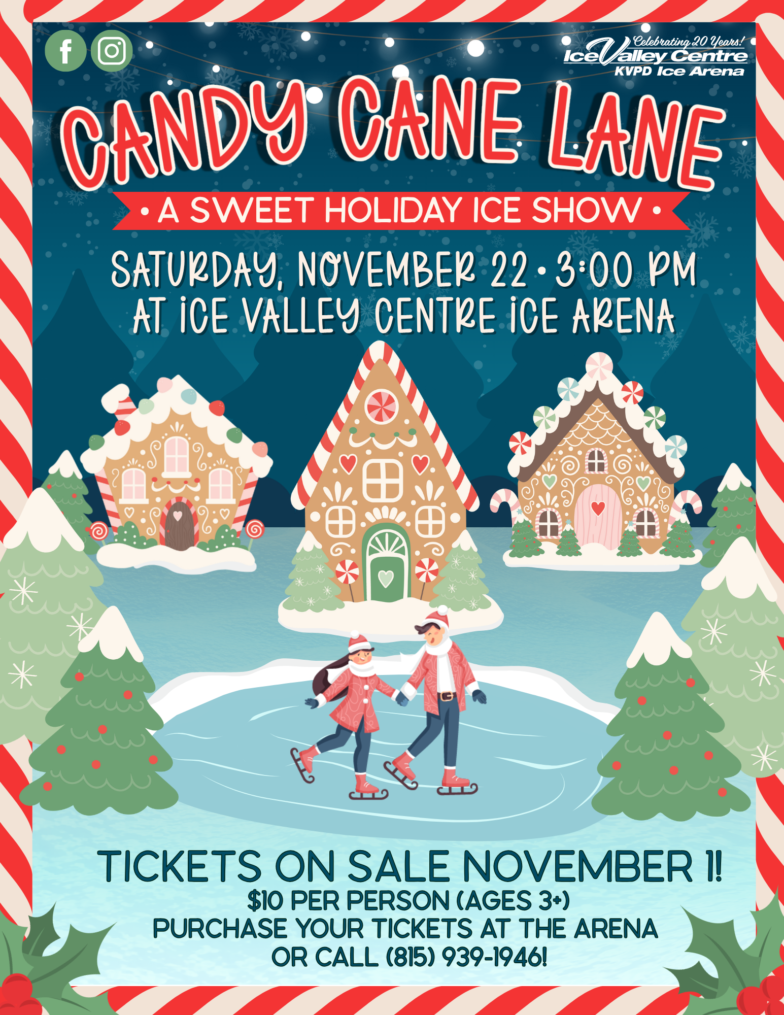 'Tis the season for sparkle and skating at Ice Valley Centre Ice Arena! Join us for our Annual Holiday Ice Show, "Candy Cane Lane," where the ice transforms into a whimsical winter wonderland. Experience the magic with glowing gingerbread houses, twinkling candy canes, and festive holiday cheer, all brought to life by our talented Learn to Skate students. Mark your calendars for Saturday, November 22, at 3:00 pm.